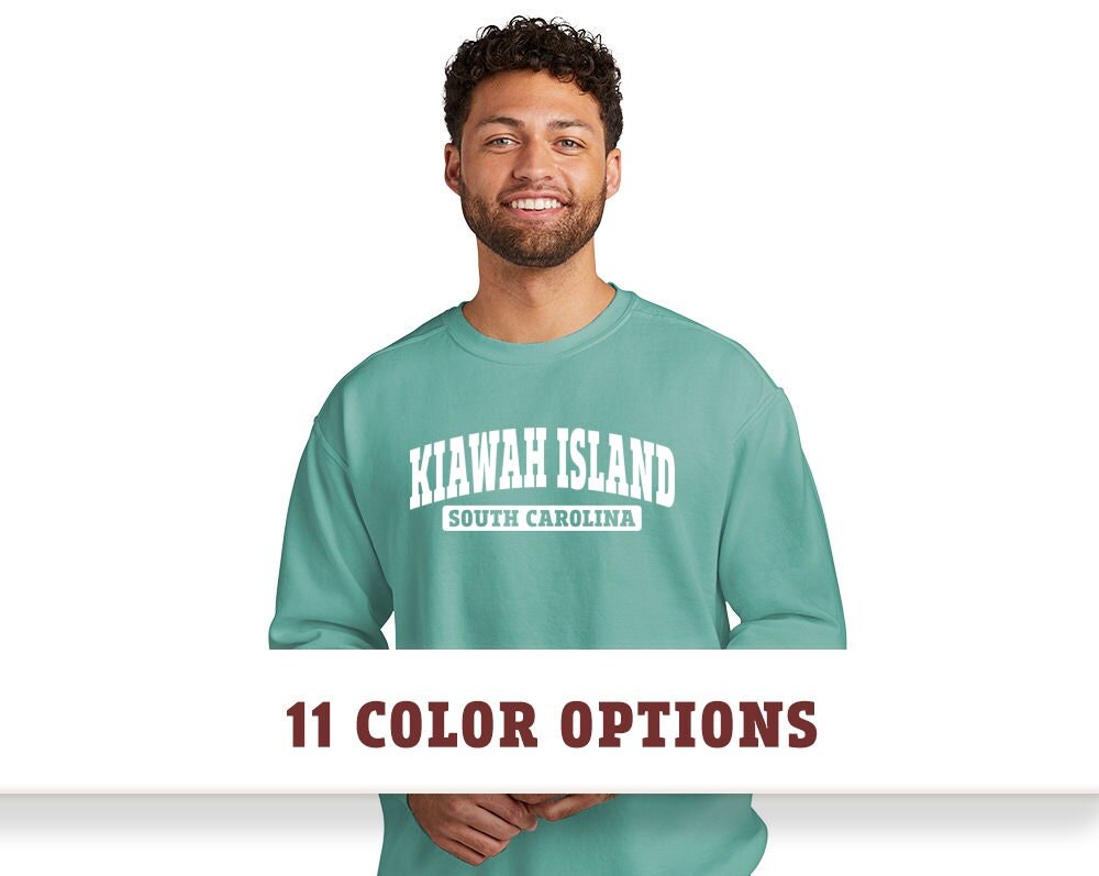 Represent Kiawah Island South Carolina with these custom Comfort Color sweatshirts. Designed with a college block font and retro gym class design, they are sure to stand out in a crowd.